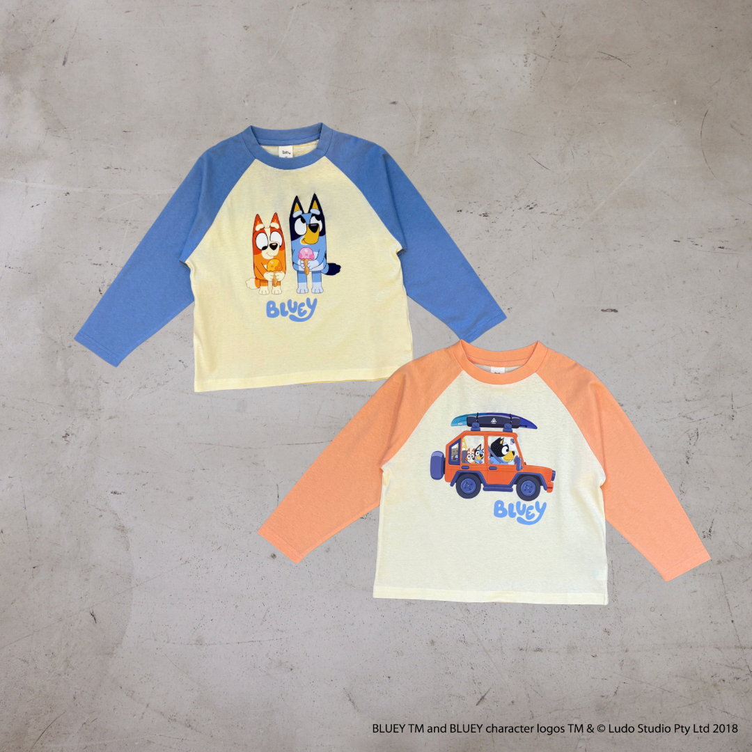 Fluffy BROTHERSからブルーイの世界観をそのまま楽しめるラグランロンTが登場。